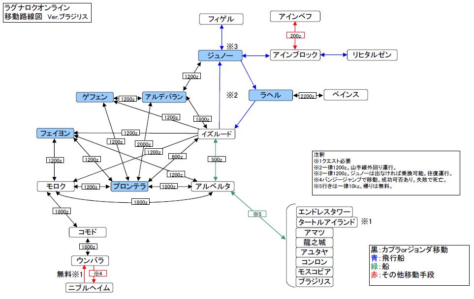 ラグナロクオンライン 移動路線図 Verブラジリス